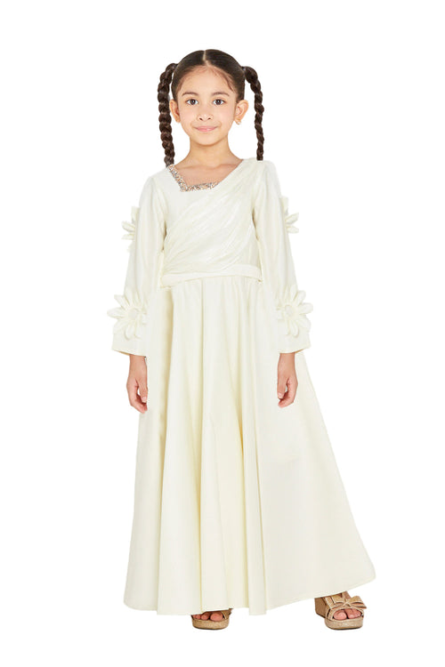 3D Floral Appliqué Sleeve Gown with Crystal Neckline